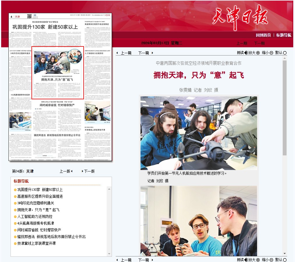 中意两国首次在低空经济领域开展职业教育合作拥抱天津,只为“意”起飞张雯婧 …