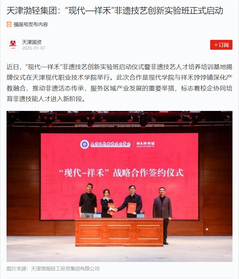 学习强国:天津渤轻集团:“现代—祥禾”非遗技艺创新实验班正式启动