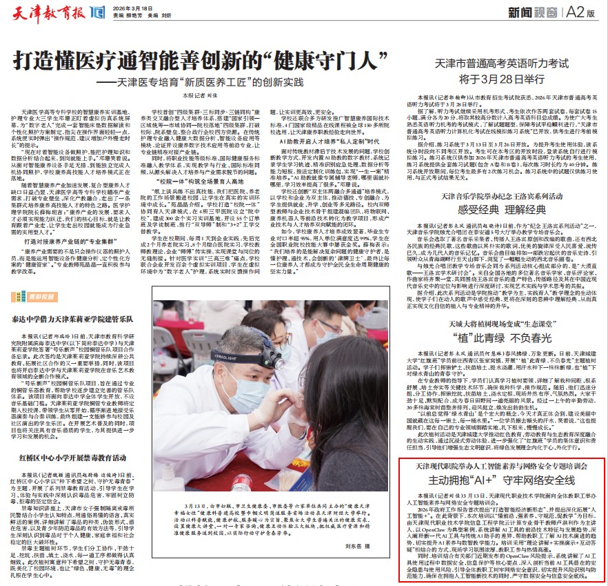 本报讯(记者刘佳)3月13日,天津现代职业技术学院面向全体教职工举办人工智能素养与网络安全专题培训会。