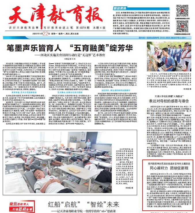 本报讯(记者刘佳)9月14日,天津现代职业技术学院携手津南区委统战部走进津南区咸水沽镇津沽休闲园,共同举办“同心凝籽力团结促新程”2025年民族团结进步宣传月主题活动。活动通过歌伴舞《爱我中华》、杂技《太空漫步》、群舞《花腰傣》、相声《欢歌笑语》、戏曲串烧等,展现了各民族群众像石榴籽一样紧紧相拥的深情。该学院师生还发挥无人机专业特长,以高质量的专业技能对活动现场进行了全角度的航拍。