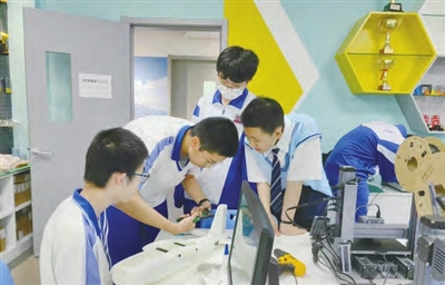 “十四五”期间,新华中学每年组织“科创嘉年华”等科技教育活动,为全体学生搭建热爱科技、探求真理的舞台。2024年获评全国中小学科学教育实验校,五年来有400余人次在天津市青少年科技创新大赛等科技教育活动中获奖。图为新华中学学生在智能制造课上亲自动手制作航模。(摄影:王卫国)
